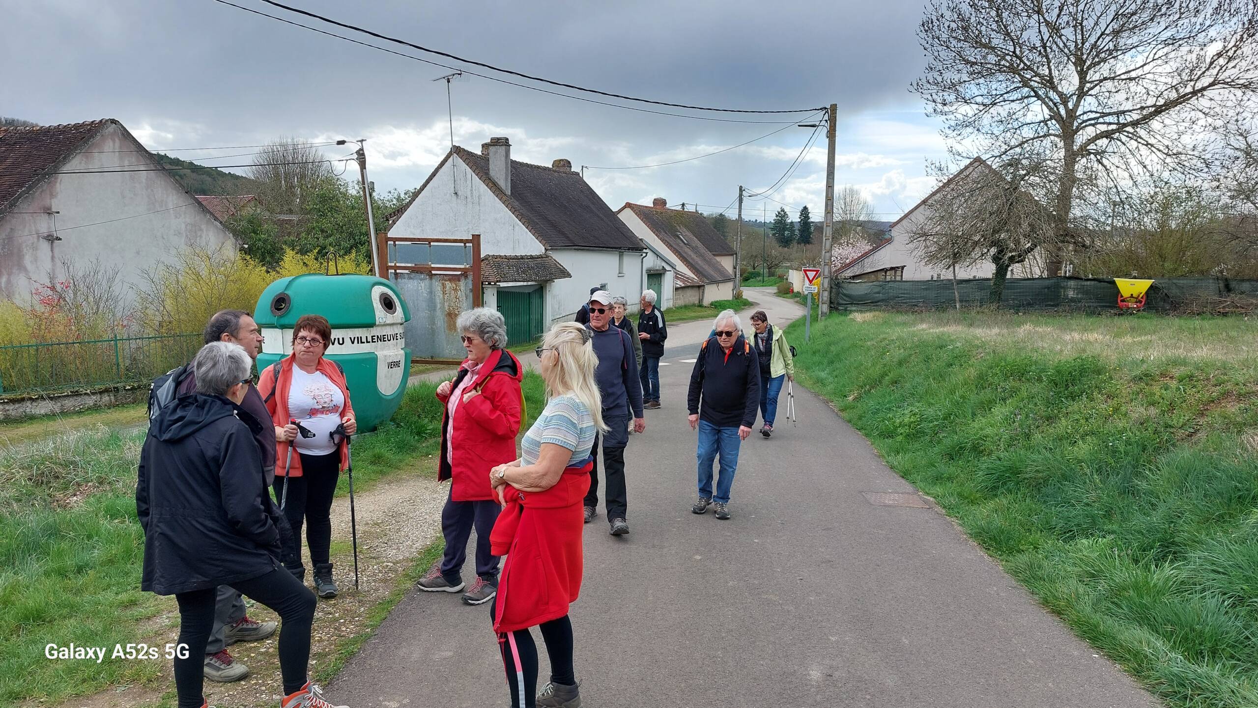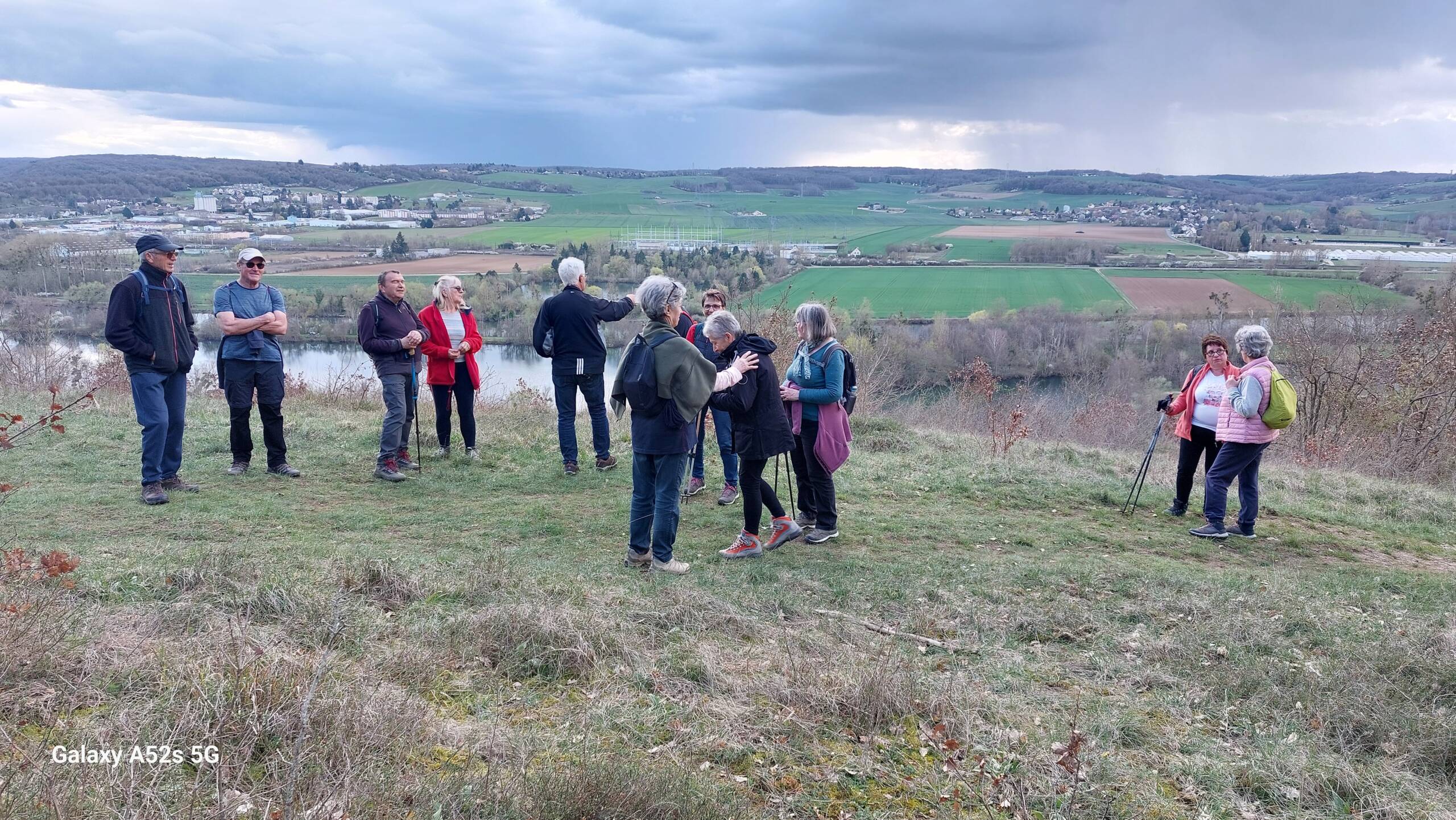 Départ de la randonnée à 14h parking quai Roland Bonnion avec Régis pour effectuer un parcours de 11km300 sur un dénivelé positif de 206m. 13 participants. Le parcours: Boulevard Victor Hugo, route de Dixmont, Chemin de Cannes, Le Petit Vau, première ascension sur le chemin de l’Abrant, chemin de la Pièce Carrée au 4ème Km, le CR de la Signole, 2ème ascension en direction de Passy par le chemin  du Haut des Vaux Limois, 3ème ascension pour atteindre le point de vue ( Altitude 141m)  sur la vallée de l’Yonne avant de redescendre sur Villeneuve. Les 2 derniers Km furent accompagné d’une averse orageuse bien abondante. Allure moyenne en déplacement 4,7km/h. Une sortie de 3h30 environ. Belle randonnée a refaire en sens inverse avec une météo plus clémente.