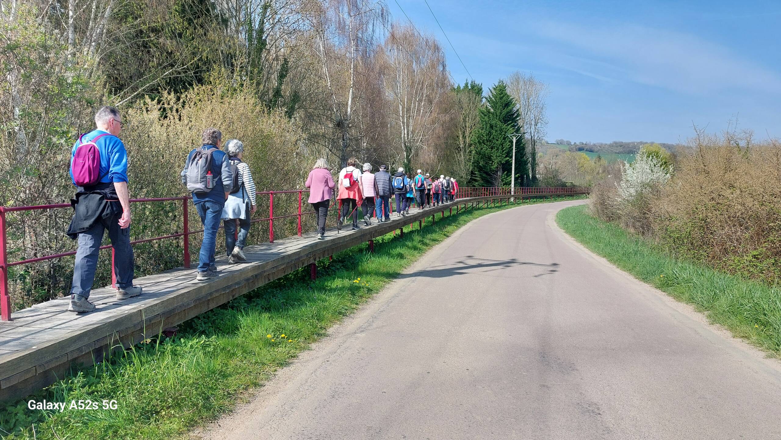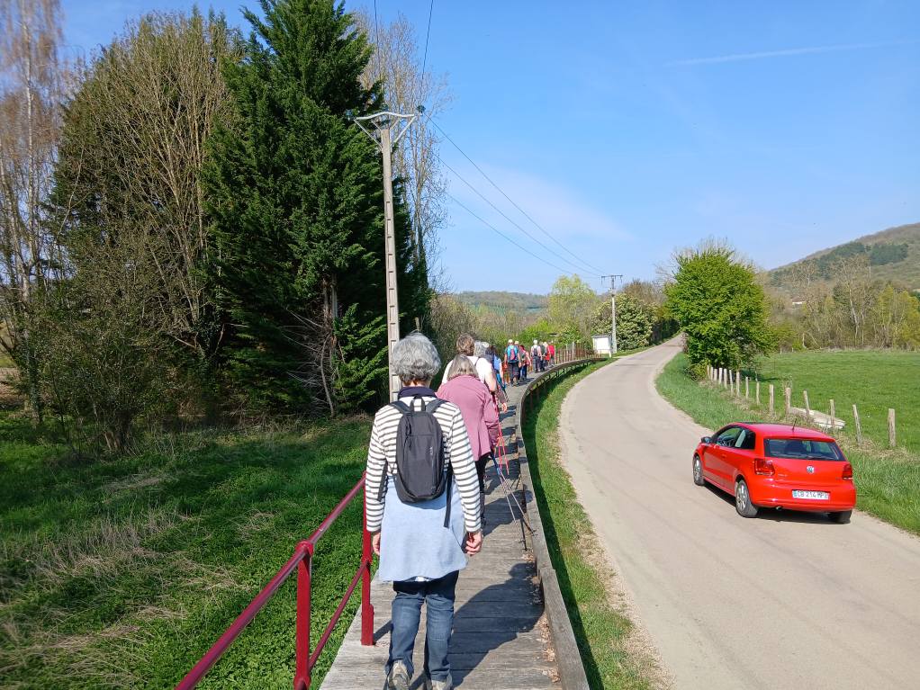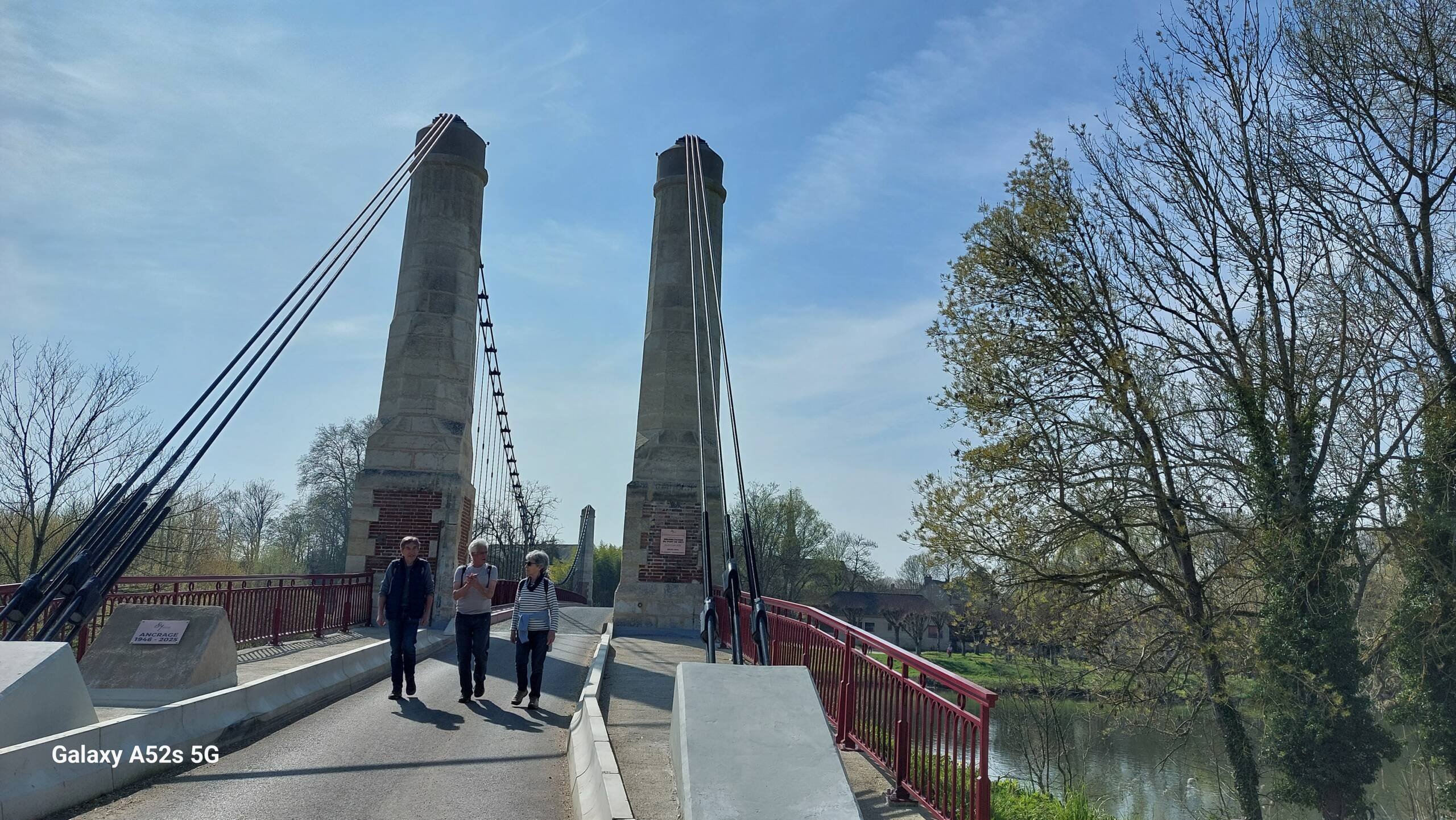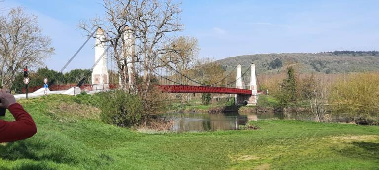 C’est au pied du Pont suspendu de Cézy, dernier ouvrage de ce type dans l’Yonne, qui a été inauguré le 5 juin 2025 après 18 mois de travaux de réhabilitation que Régis nous a donné RDV à 14h pour effectuer un circuit de 12,700km avec possibilité de raccourci à 8 km sur un dénivelé positif de 130m. 19 marcheurs étaient présents. 13 sur le 12.700 km et 6 sur le 8 km. Départ par la traversée de ce pont pour rejoindre St Anbin-sur-Yonne , direction Villecien par le chemin de halage, acension au 3ème km avec vue sur la vallée de l Yonne, longue descente sur St Aubin au 5ème km, direction Joigny par la voie verte qui longe le canal de la dérivation de l Yonne sur 3.5 km, retour à Cezy par le camping d’ Epizy, puis la traversée du pont aval de St Aubin et le chemin du Pont d’en Haut. 3h13 de sortie et 2h42 en déplacement. Soit une allure de 4,7 km/h de moyenne en déplacement et 4 km/h sur le sortie. Belle randonnée printanière.