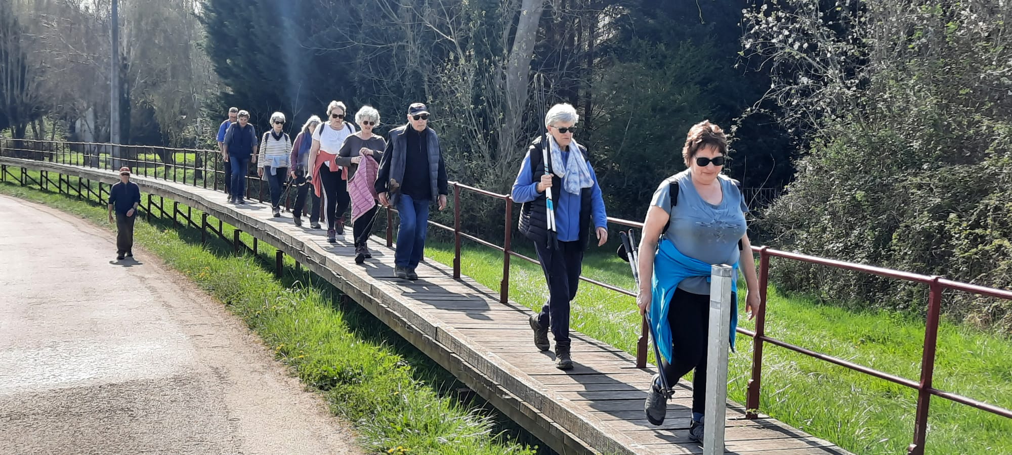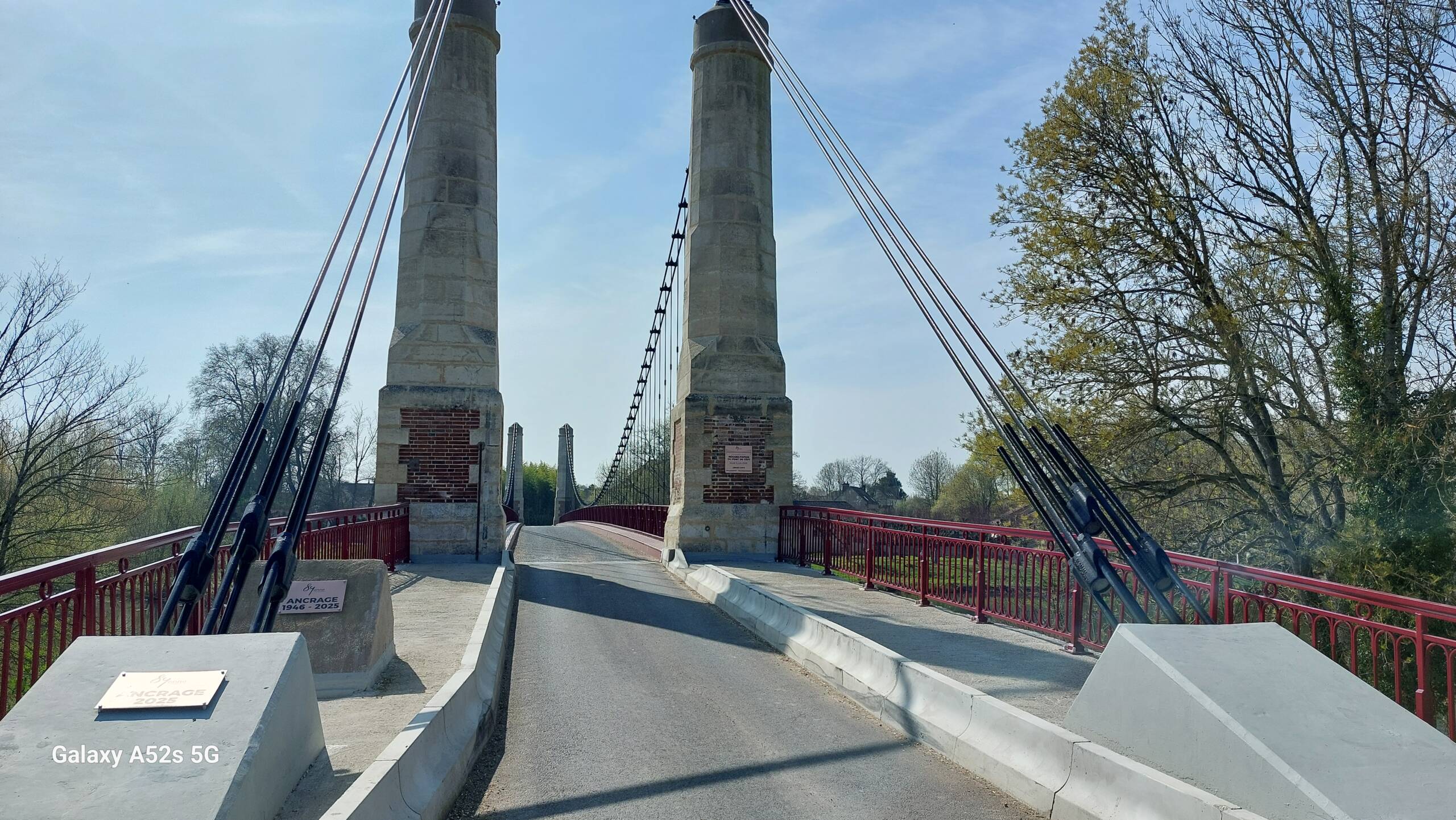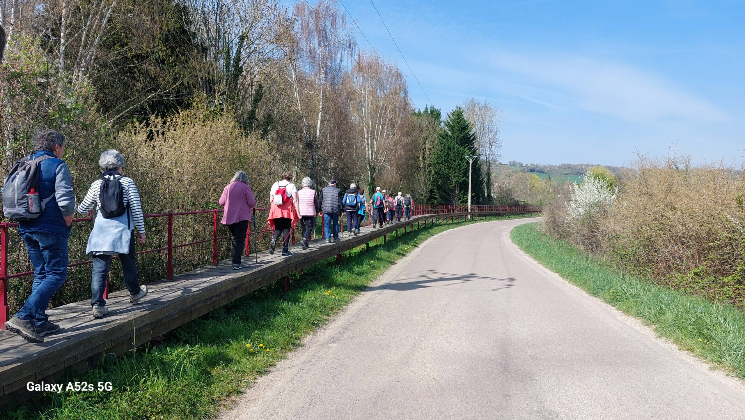 C’est au pied du Pont suspendu de Cézy, dernier ouvrage de ce type dans l’Yonne, qui a été inauguré le 5 juin 2025 après 18 mois de travaux de réhabilitation que Régis nous a donné RDV à 14h pour effectuer un circuit de 12,700km avec possibilité de raccourci à 8 km sur un dénivelé positif de 130m. 19 marcheurs étaient présents. 13 sur le 12.700 km et 6 sur le 8 km. Départ par la traversée de ce pont pour rejoindre St Anbin-sur-Yonne , direction Villecien par le chemin de halage, acension au 3ème km avec vue sur la vallée de l Yonne, longue descente sur St Aubin au 5ème km, direction Joigny par la voie verte qui longe le canal de la dérivation de l Yonne sur 3.5 km, retour à Cezy par le camping d’ Epizy, puis la traversée du pont aval de St Aubin et le chemin du Pont d’en Haut. 3h13 de sortie et 2h42 en déplacement. Soit une allure de 4,7 km/h de moyenne en déplacement et 4 km/h sur le sortie. Belle randonnée printanière.