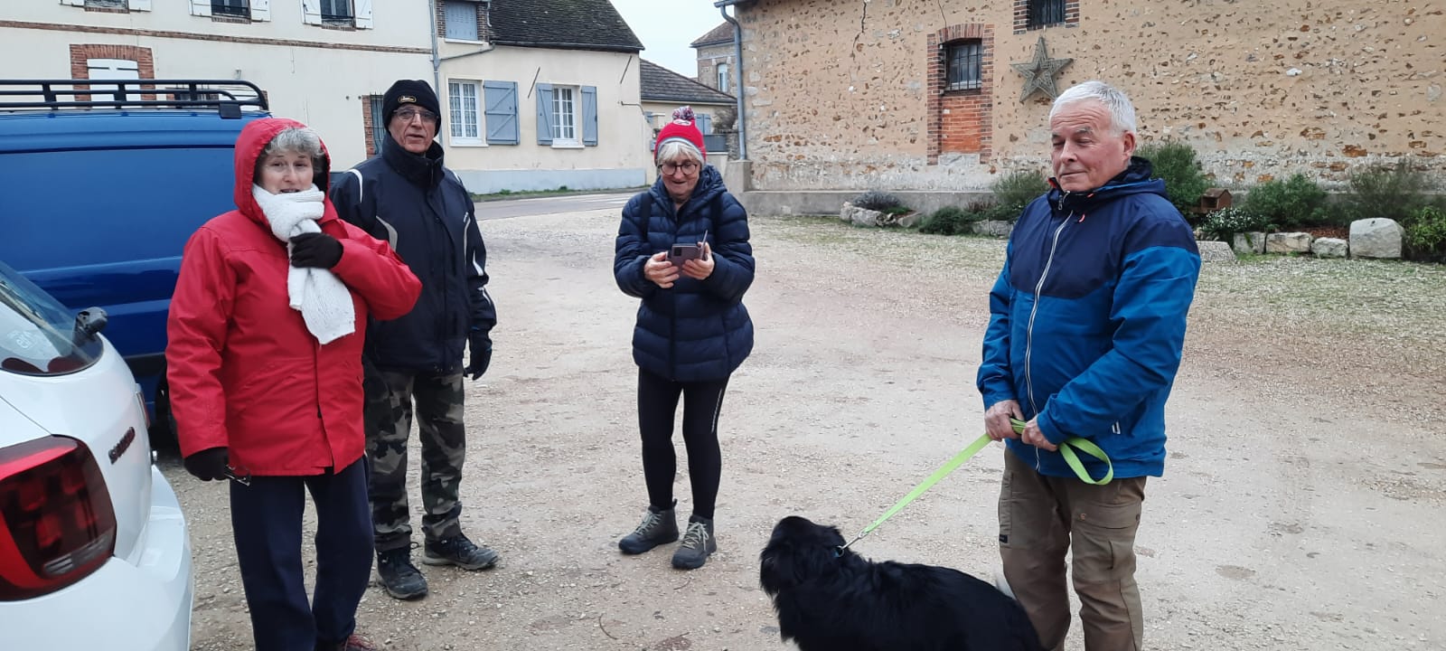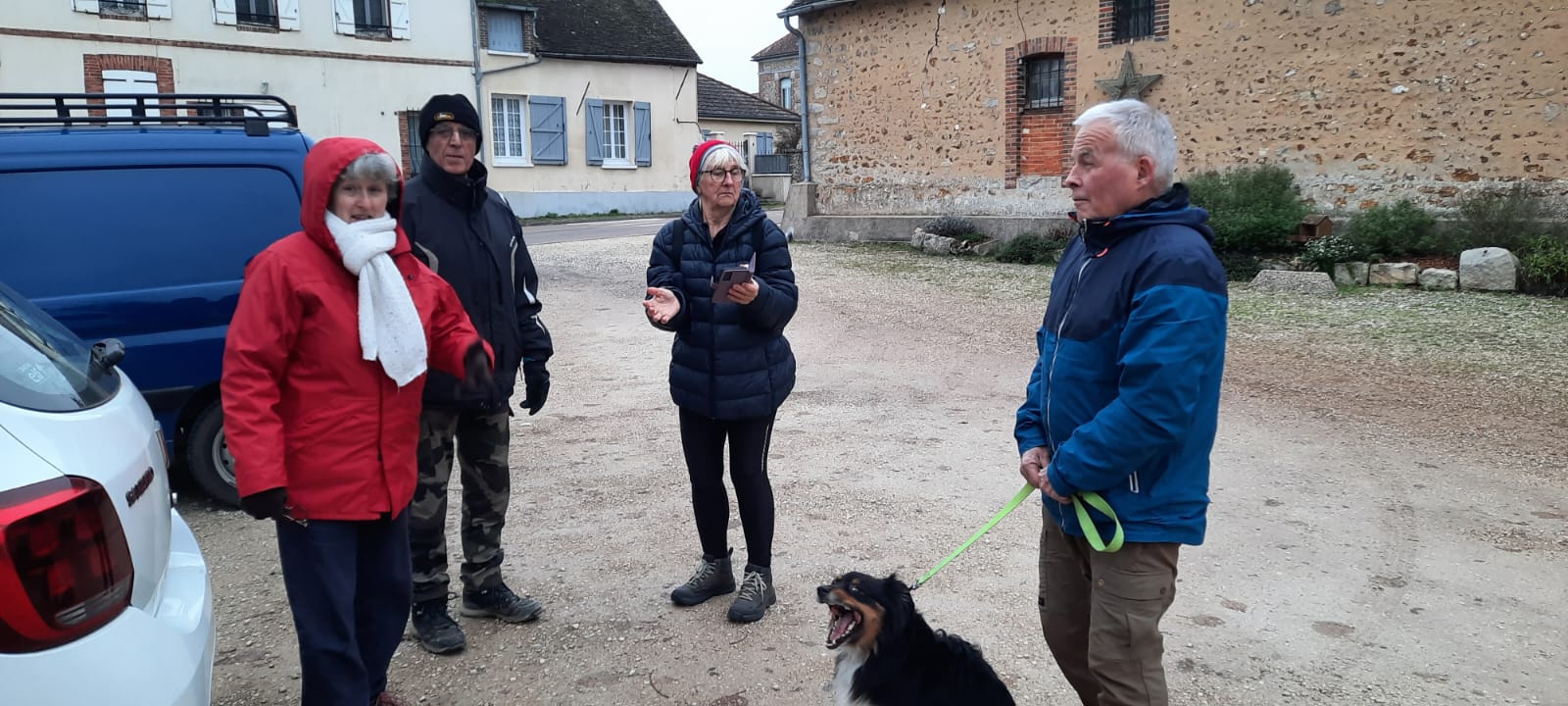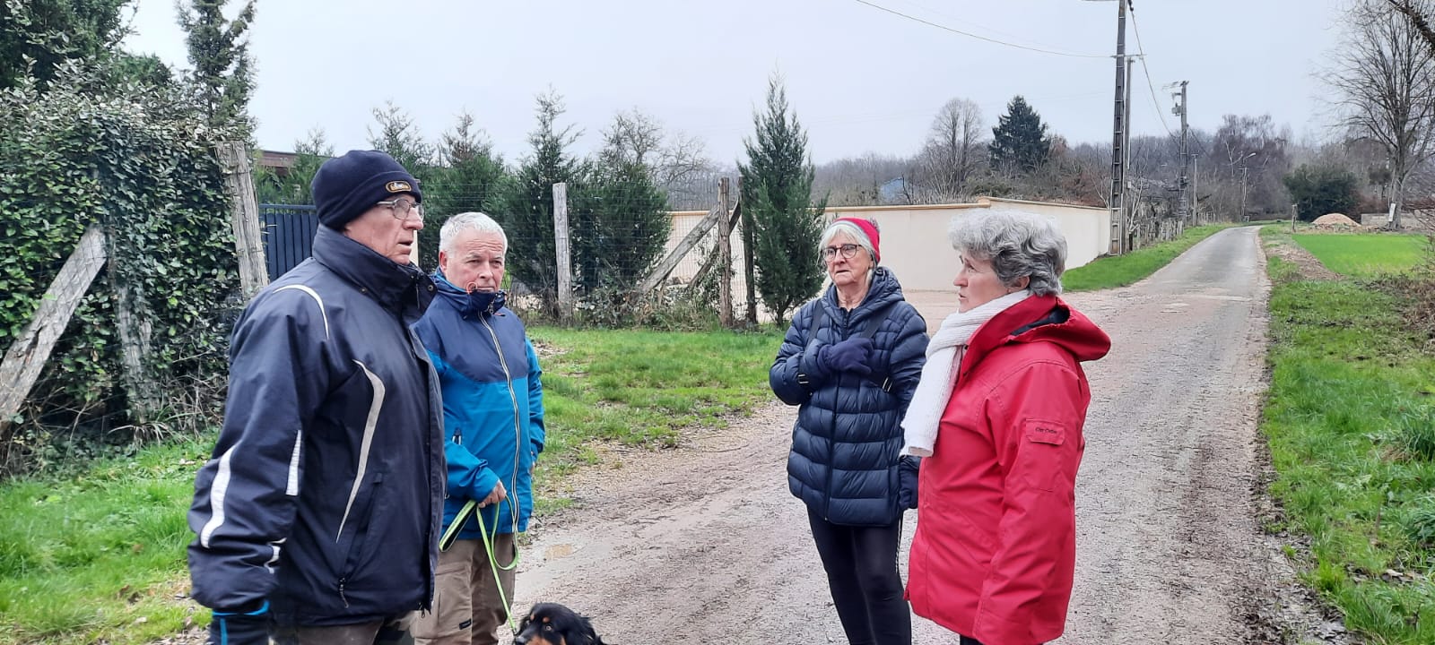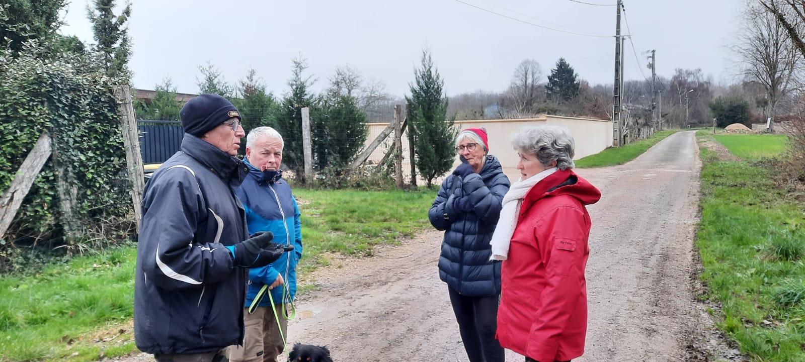 Sous une météo agréable, 2 randonneuses et 3 randonneurs ont pris le départ place de l ‘église pour un parcours de 10,5 km , rue Jean Moulin, route de Chaumot, la Gomette, un petit tour dans le hameau Maillets, les Jolivaux, le Puits aux Pâtres, les Guillots puis avec le vent frais après avoir emprunté un chemin retourné par les 🐗 sangliers, nous avons partagé le petit ravitaillement offert par Pierrette avant de rejoindre nos véhicules.