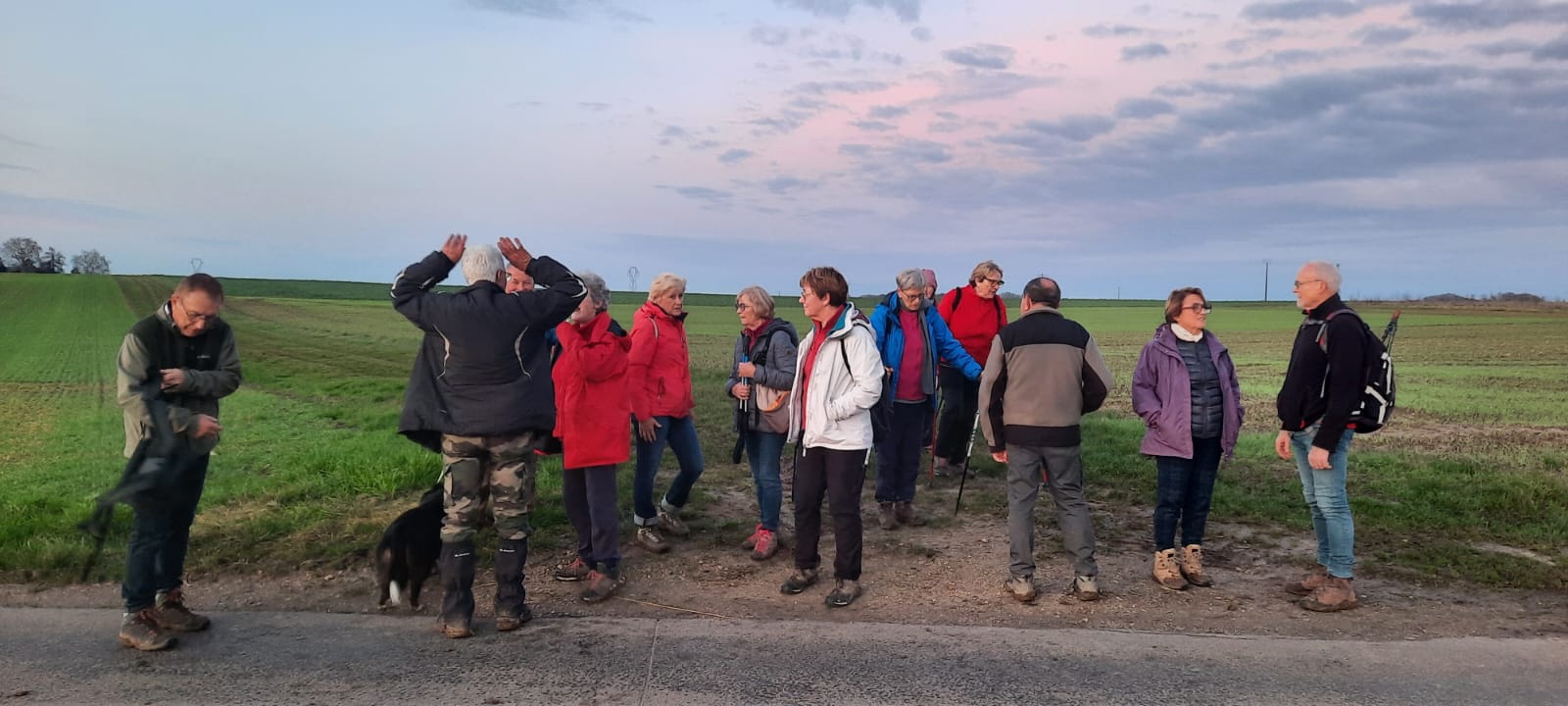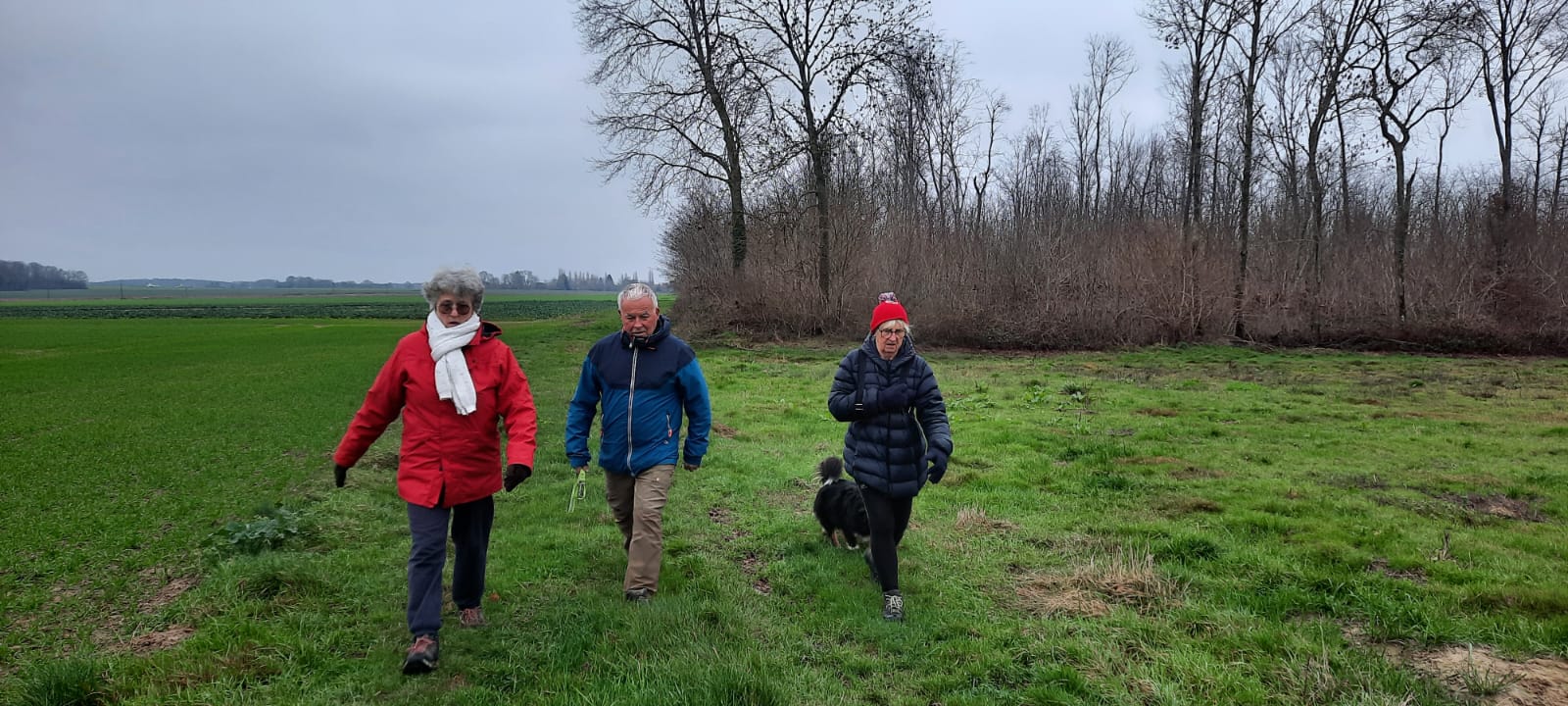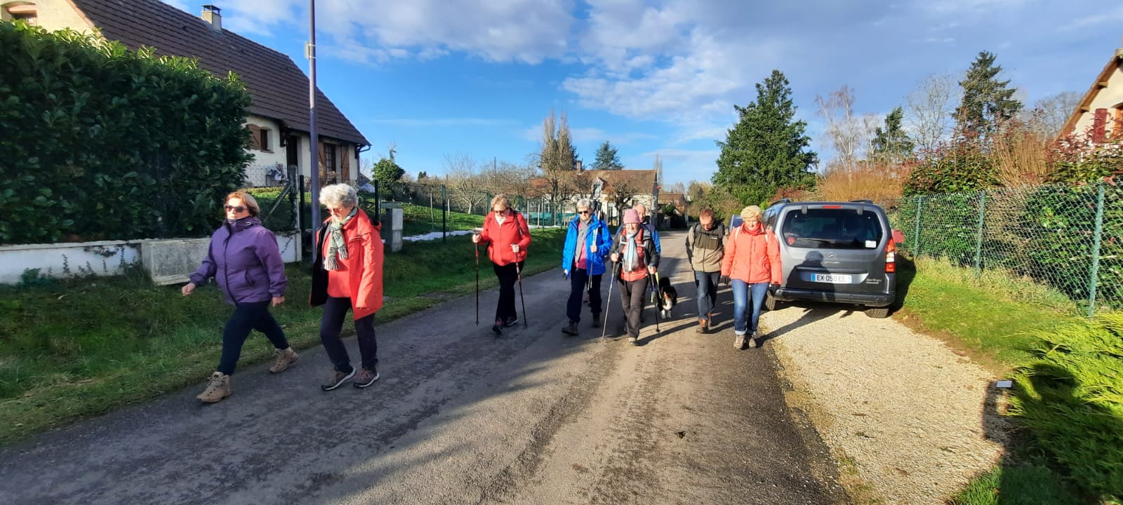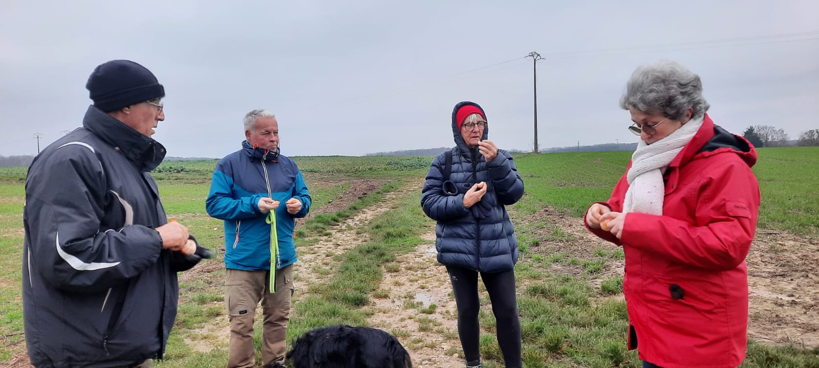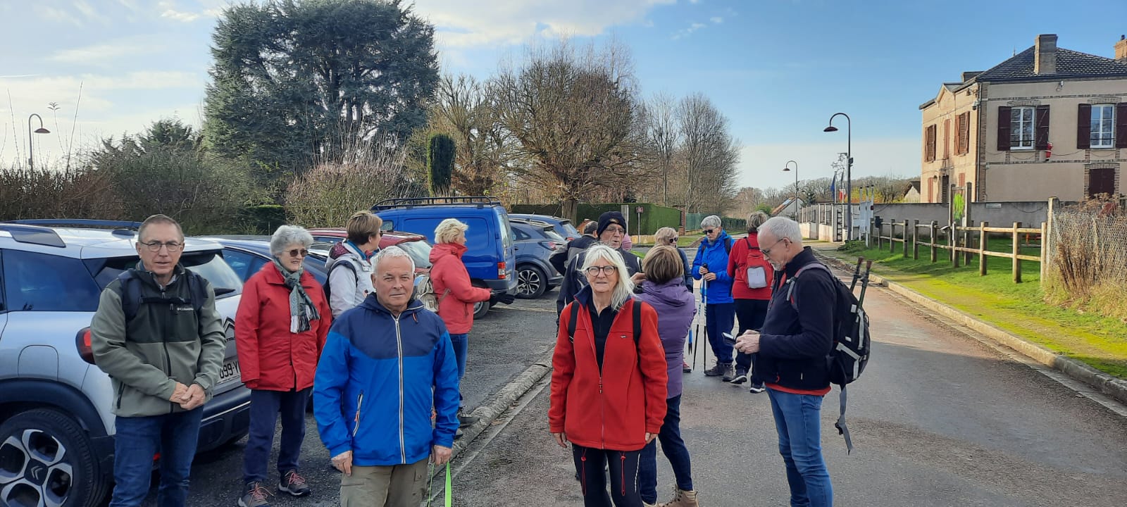 Sous une météo agréable, 2 randonneuses et 3 randonneurs ont pris le départ place de l ‘église pour un parcours de 10,5 km , rue Jean Moulin, route de Chaumot, la Gomette, un petit tour dans le hameau Maillets, les Jolivaux, le Puits aux Pâtres, les Guillots puis avec le vent frais après avoir emprunté un chemin retourné par les 🐗 sangliers, nous avons partagé le petit ravitaillement offert par Pierrette avant de rejoindre nos véhicules.