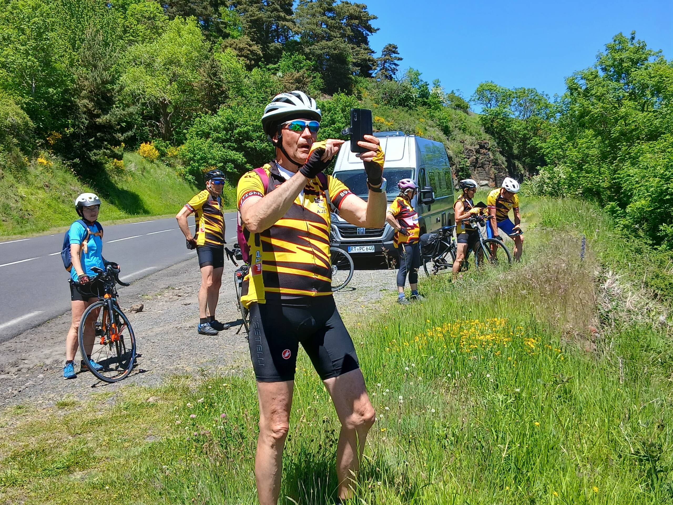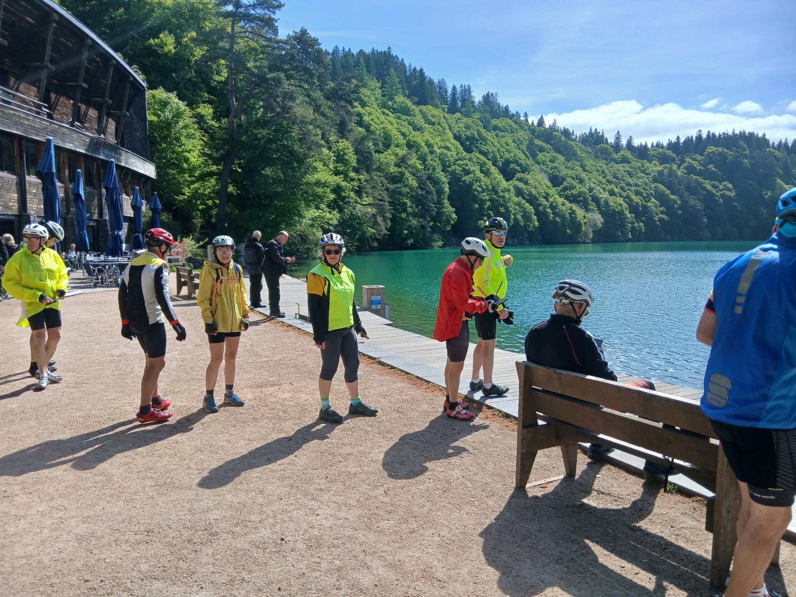 - Cyclo : Besse 64 Km Passage par Super Besse. Pique-nique au KM 46, au bord du lac Pavin où l’on retrouve le reste du groupe. Passage au col de la Geneste à 1372 m. Retour au camping début d’après-midi. Bilan 65 Km ; 1054 D+ Max 12% ; 19 Km/h